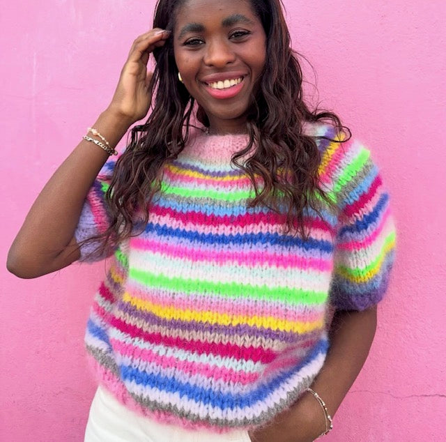 Har du ikke garnrester liggende, eller har du bare ikke nok rester og vil du gerne have sådan en skøn stribet trøje?
